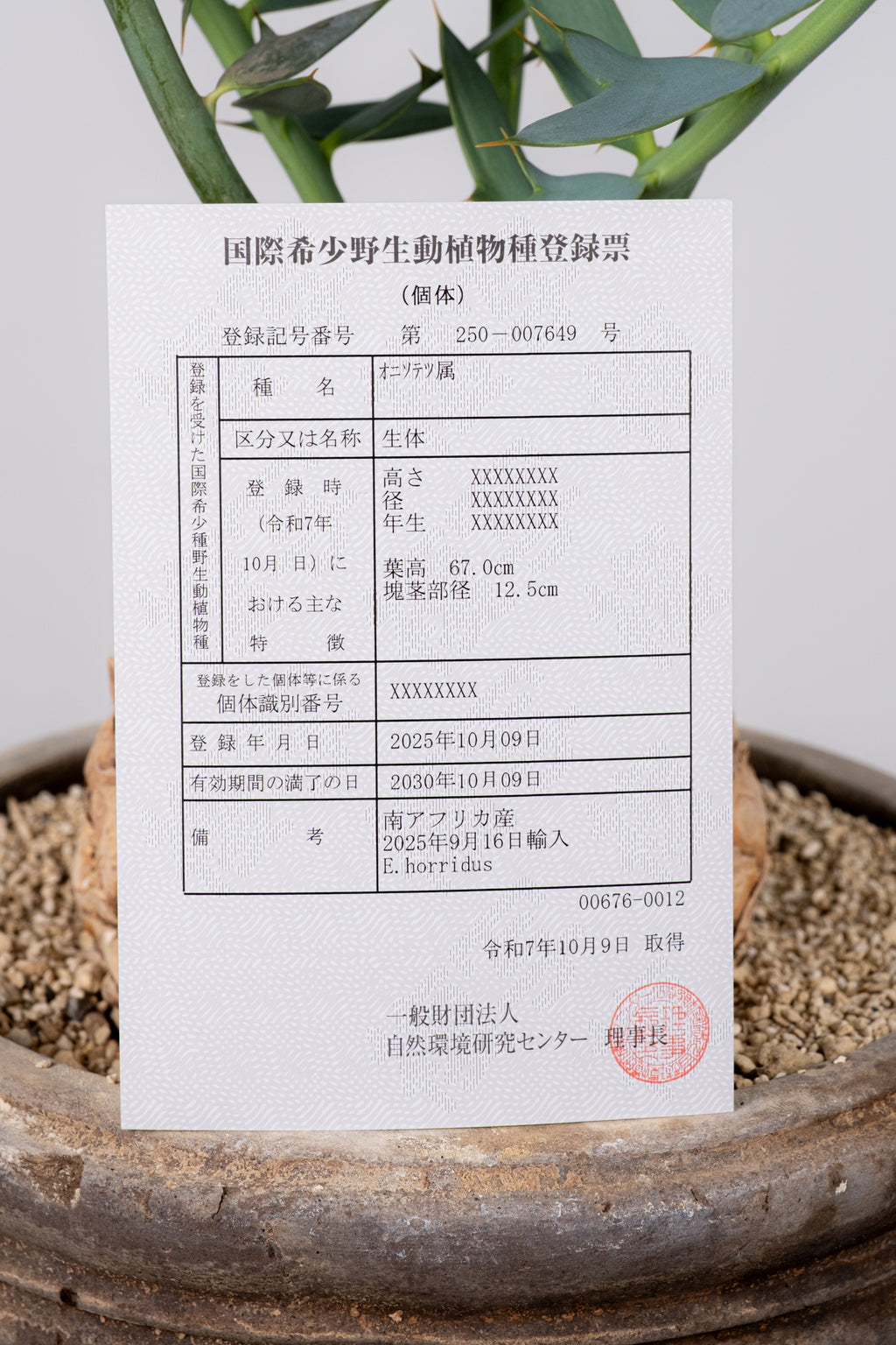 エンセファラルトス・ホリダス学名:Encephalartos horridus国際希少野生動植物種登録票付き
