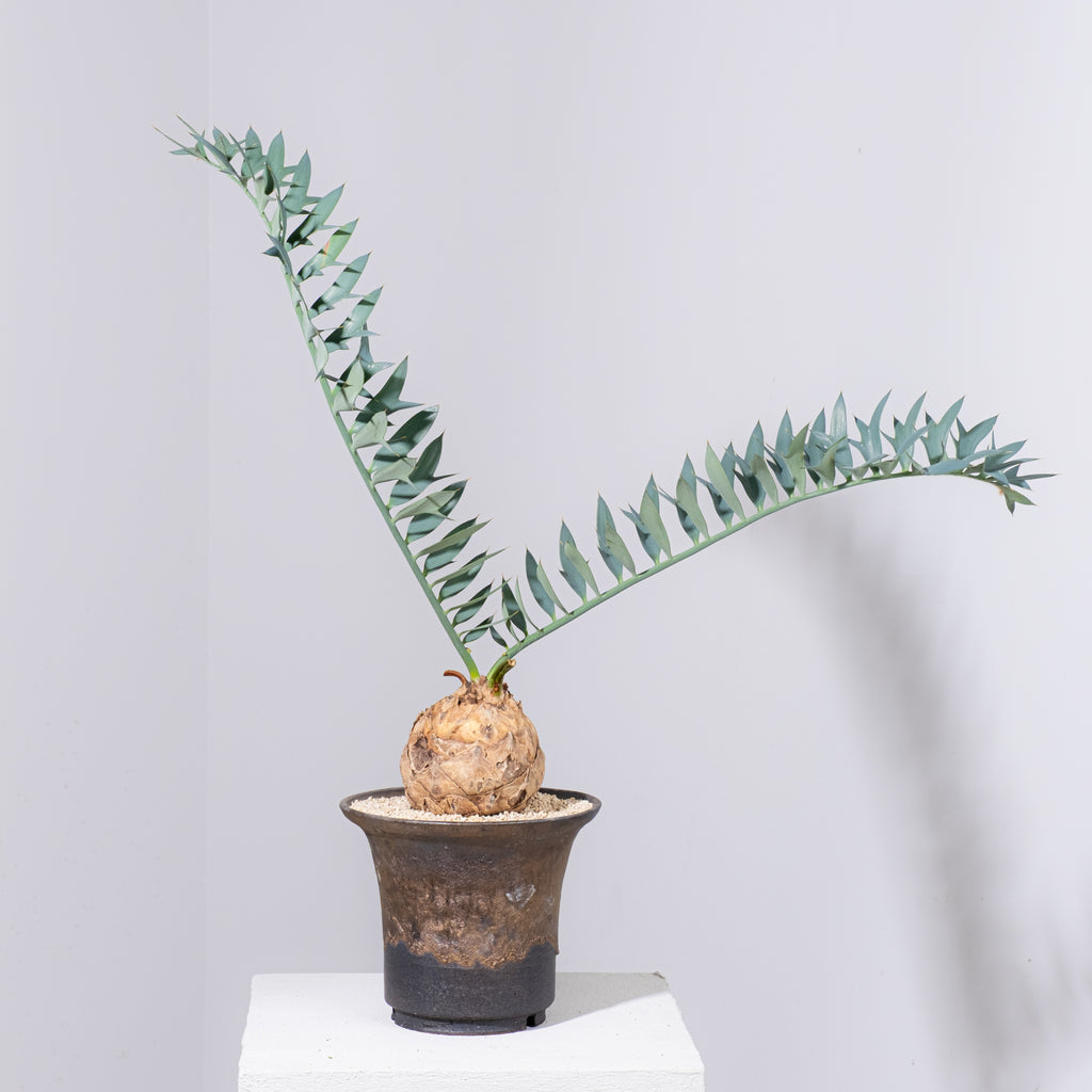 【登録番号】250-007654【登録年月日 】2025/10/09【有効期間満了日】2030/10/09【商品番号】No.17【タイプ】ザミア科オニソテツ属【入荷日 】2025/09/16【塊根部】10cm【高さ】46.0cm【耐寒性】大株になると-5℃以上 【発送予定】お支払い確認次第発送させて頂きます。