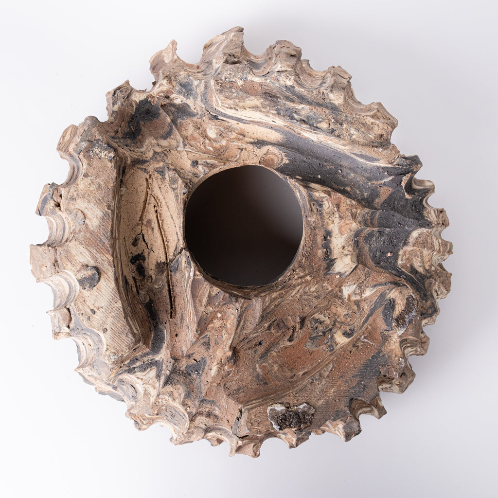陶土が持つ原始的な力強さと、遊び心ある色彩や形状を融合させた作品が特徴です。