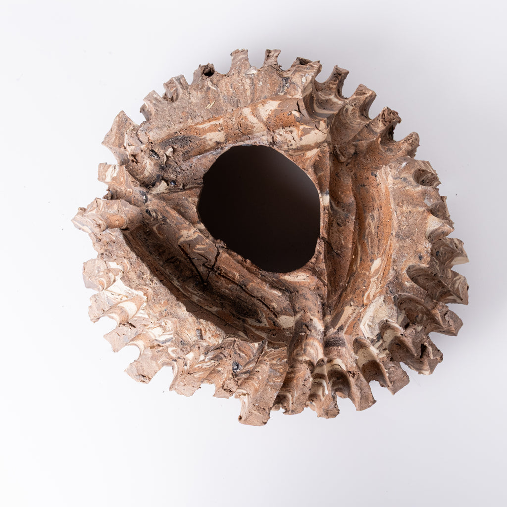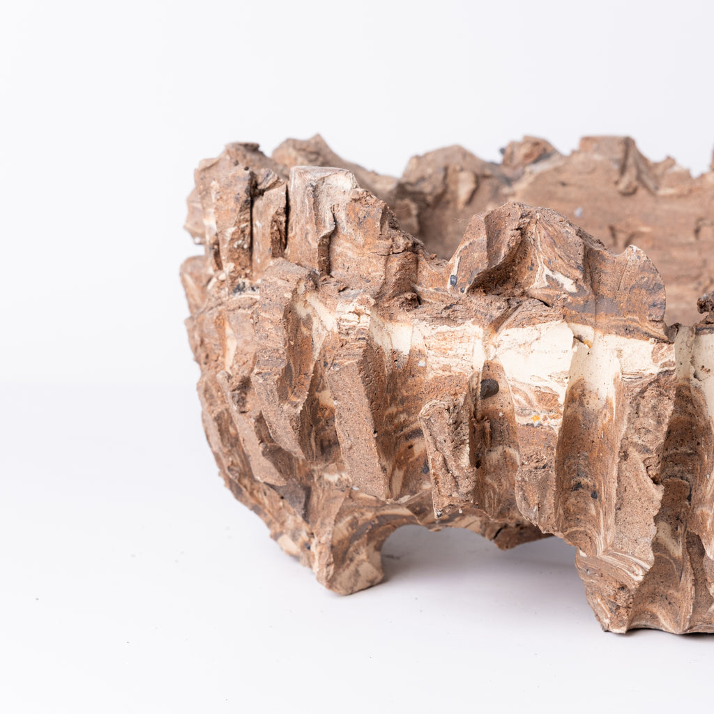 福岡を拠点に作陶する若手作家。陶土が持つ原始的な力強さと、遊び心ある色彩や形状を融合させた作品が特徴です。伝統的な技法を軸にしながらも、現代の感覚で“使って楽しめる器”を追求。一点一点、ろくろと手びねりで成形され、唯一無二の表情を持つ鉢は、観葉植物や多肉植物との相性も抜群です。
