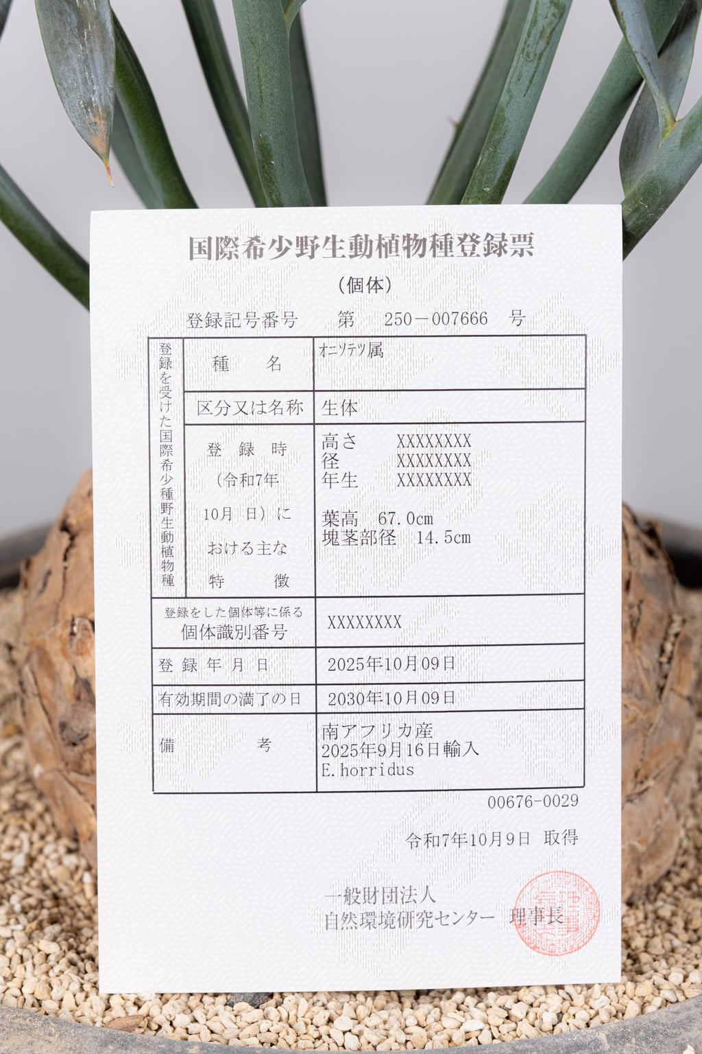 エンセファラルトス・ホリダス学名:Encephalartos horridus国際希少野生動植物種登録票付き