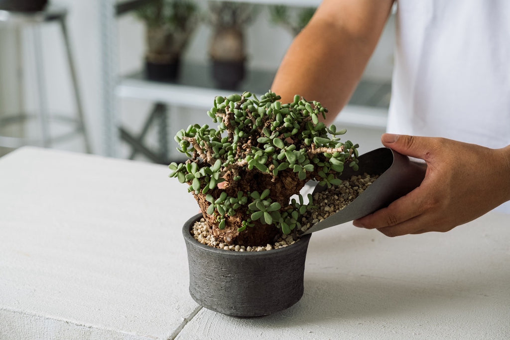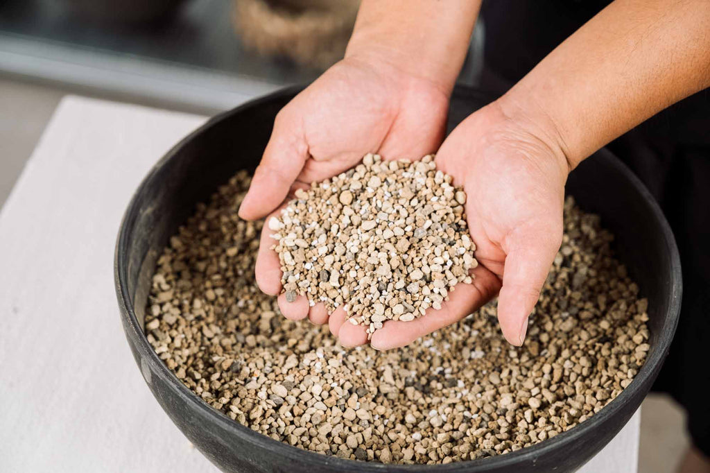 大切な自社の植物を綺麗に育てたいという思いで、実際に現地の植物・土壌を見ているKOMOと塊根植物のプロ「村瀬一貴氏」がタッグを組み、試行錯誤を経て完成した専用用土を販売致します。